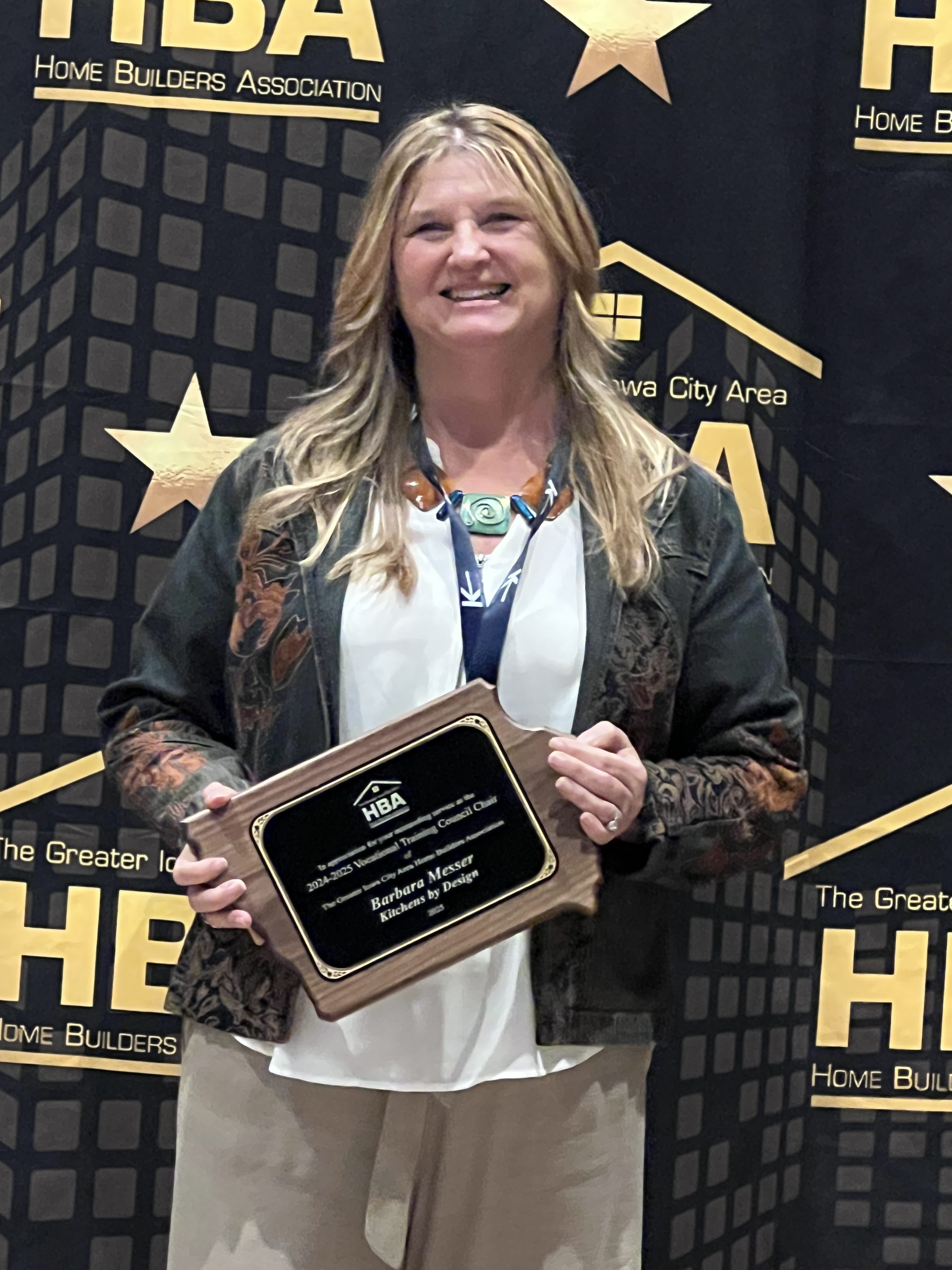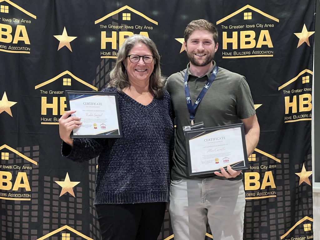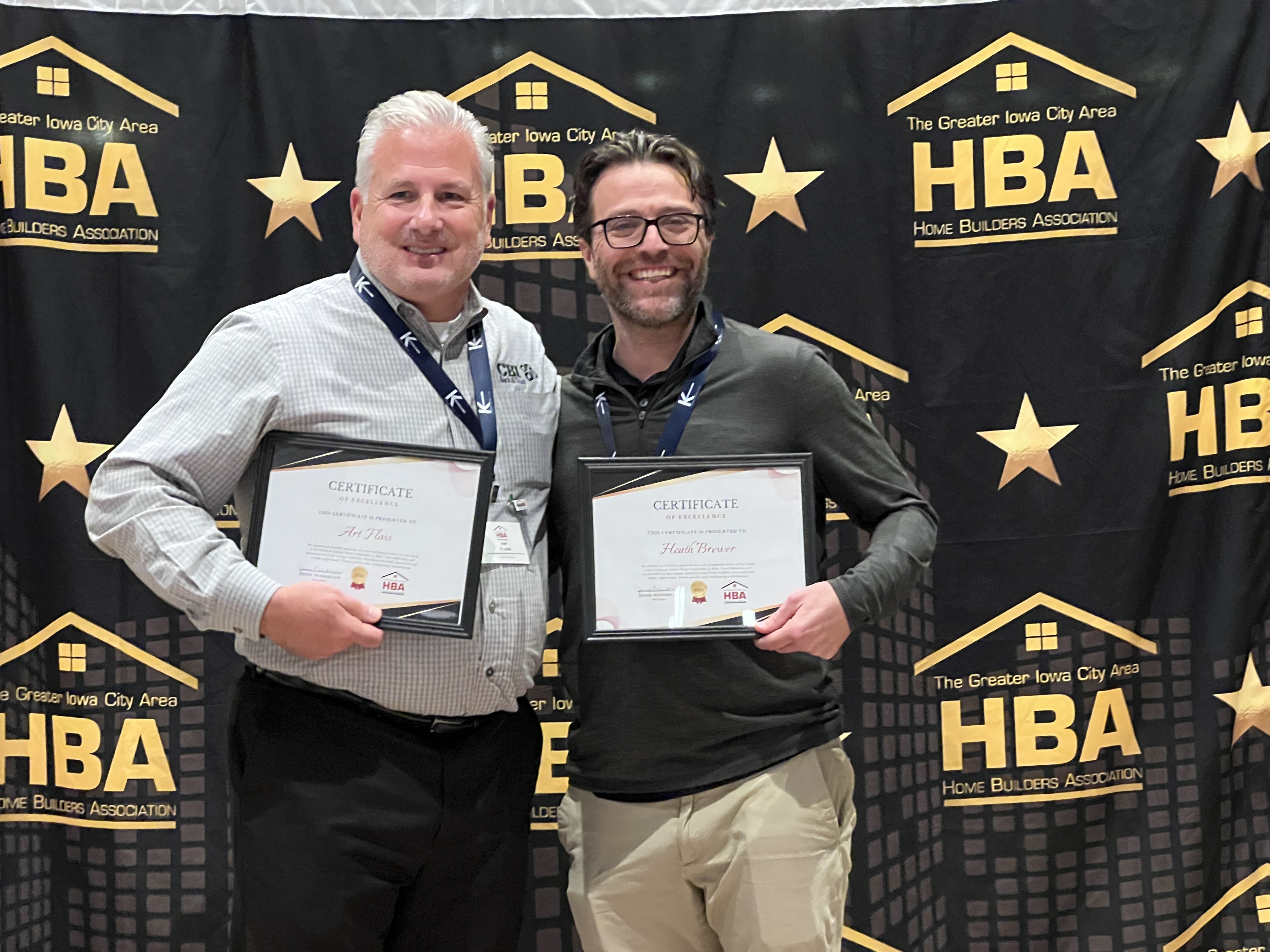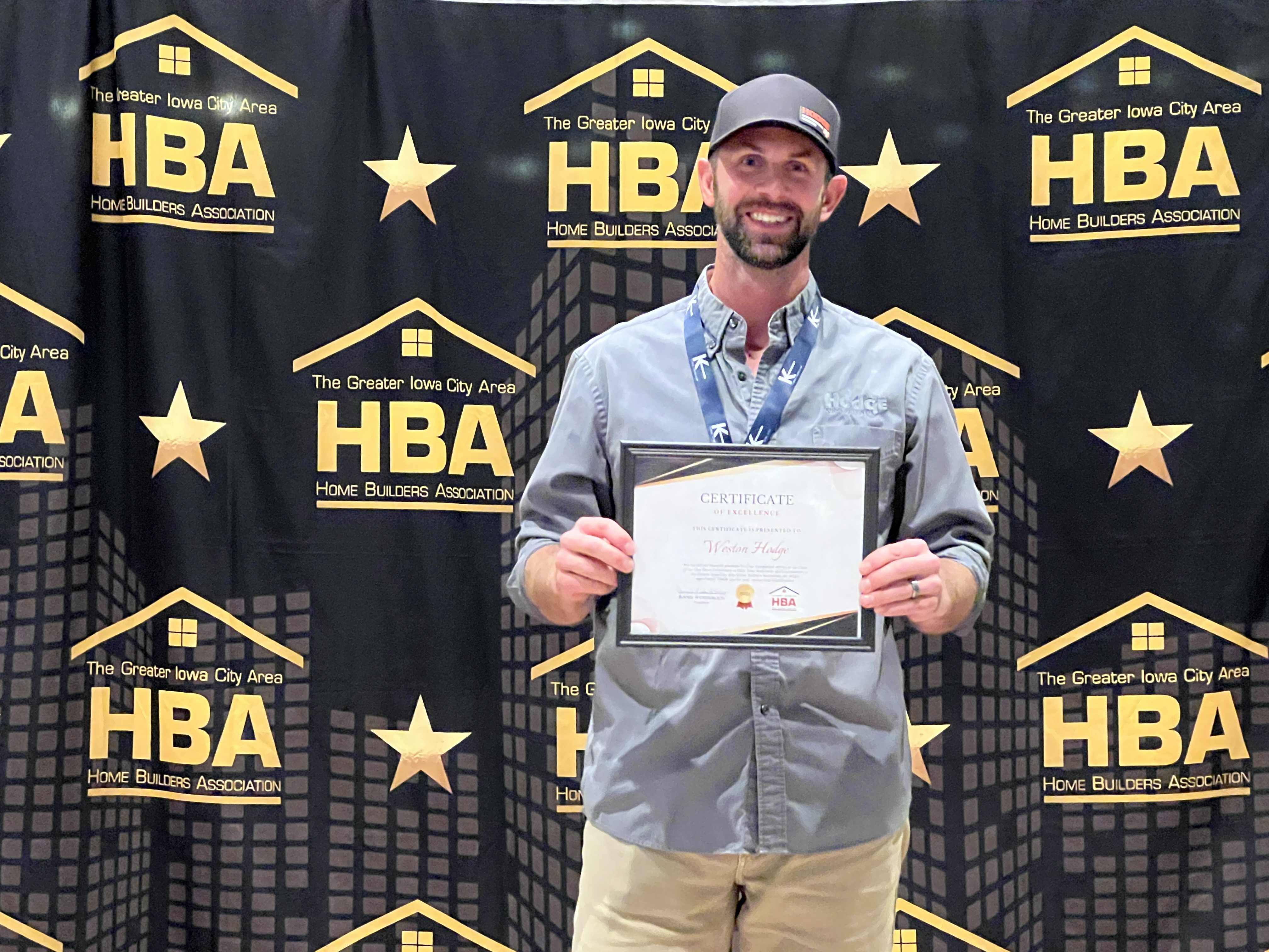 This included Heather Kuenster with Kuenster Plumbing Heating & Air for the Remodelers Council, Lexi Mendoza with Hills Bank & Trust for Professional Women in Building, Barbara Messer with Kitchens by Design for the Vocational Training Council, and Amy Pearson with Future Builders of Iowa. Additional recognition went to Mike Pugh with Pugh Hagan Prahm for the Legislative Committee, Rory Triplett with Relion Insurance for the Membership Committee, Aaron McGlynn with Kirkwood for the Events Committee, and Weston Hodge with Hodge Companies for the Clay Shoot Committee. We also highlighted Robin Sueppel with Urban Acres and Alex Carrillo with Bedrock Builders for the Parade of Homes, Art Floss with CBI Bank & Trust and Heath Brewer with PSC Distribution for the Home Show, and Dylan Schindler with Hawkeye Ready Mix for the Golf Committee.